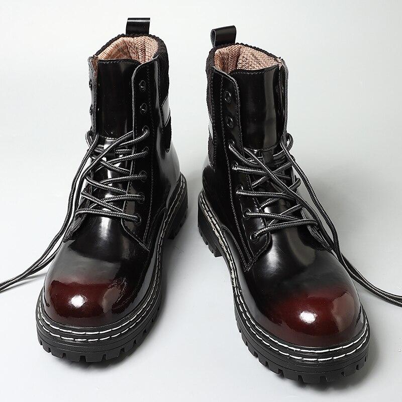 Женские мотоциклетные ботинки, зимняя обувь из мягкой кожи, черные Botas на танкетке, женские туфли на платформе со шнуровкой, женские винно-красные Botas Mujer