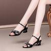 Женские сандалии со стразами, летние туфли на среднем каблуке с открытым носком, удобная обувь с пряжкой на щиколотке и ремешком для офисных женщин
