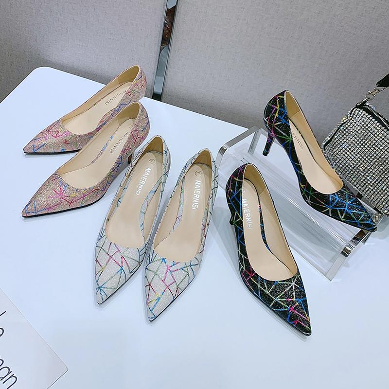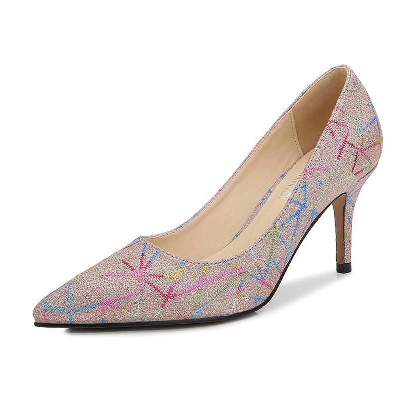 Большой размер 35–44, 45, 46, модная женская обувь на шпильке, повседневные офисные туфли-лодочки с острым носком, высокие каблуки 7,5 см, брендовый узор
