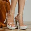 Шикарные прозрачные модные женские сандалии из ПВХ, большой размер 42, элегантная сексуальная летняя модная обувь на платформе на очень высоком каблуке