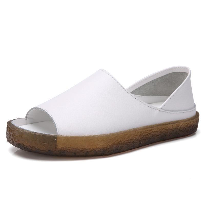 Кожаные сандалии с открытым носком, женские летние шлепанцы с мягкой подошвой, повседневные двойные тапочки на плоской подошве, большой размер