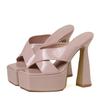Летние пикантные тапочки на очень высоком каблуке с открытым носком, женские сандалии на платформе, модные зеленые шлепанцы-гладиаторы с узкими ремешками