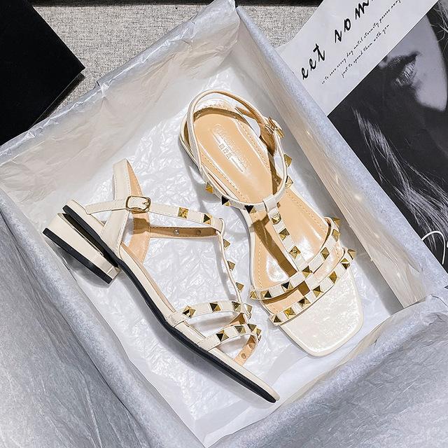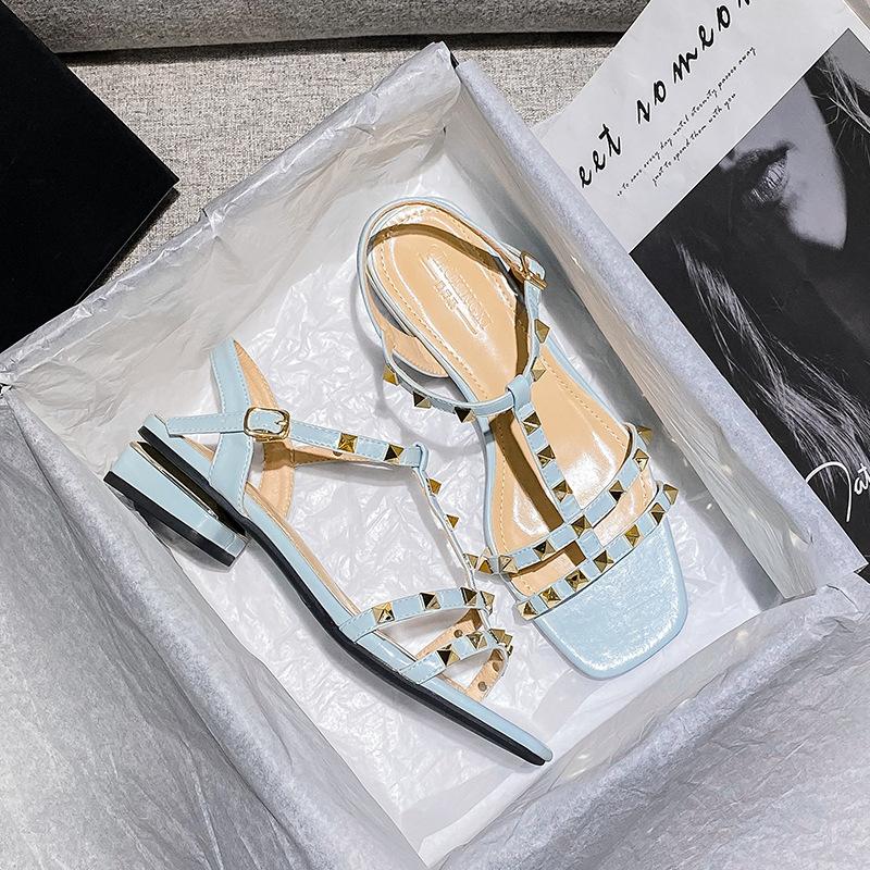 Летние женские босоножки с заклепками на низком каблуке, модная корейская обувь с тонкой лентой для девочек, обувь большого размера, тапочки, бесплатная доставка
