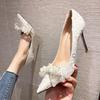 Новые сексуальные свадебные туфли Prals со стразами и бантом, женские туфли-лодочки на высоком каблуке, острый носок, металлический каблук, черный, бежевый, Прямая поставка