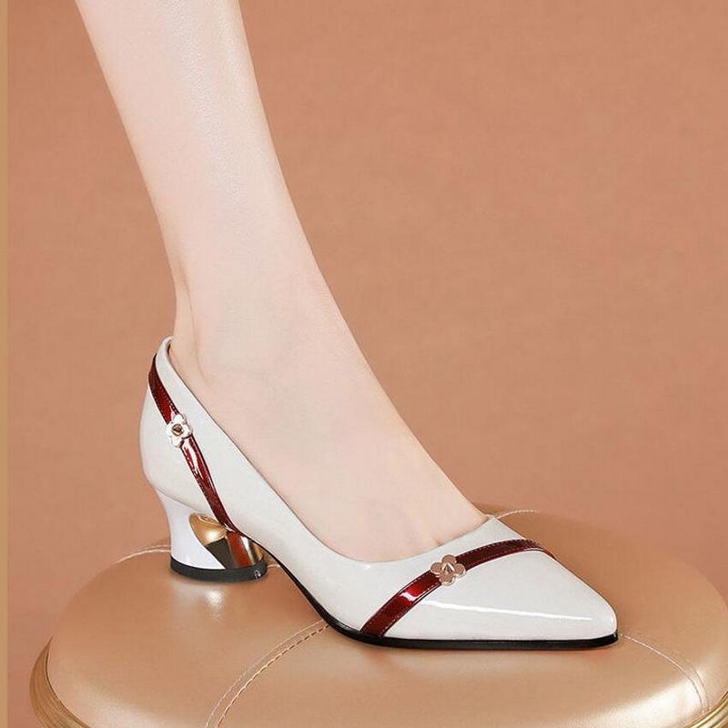 Женские туфли из мягкой кожи, модные весенние туфли на среднем каблуке, с острым носком, с открытым носком, без шнуровки, черные, белые, Прямая поставка