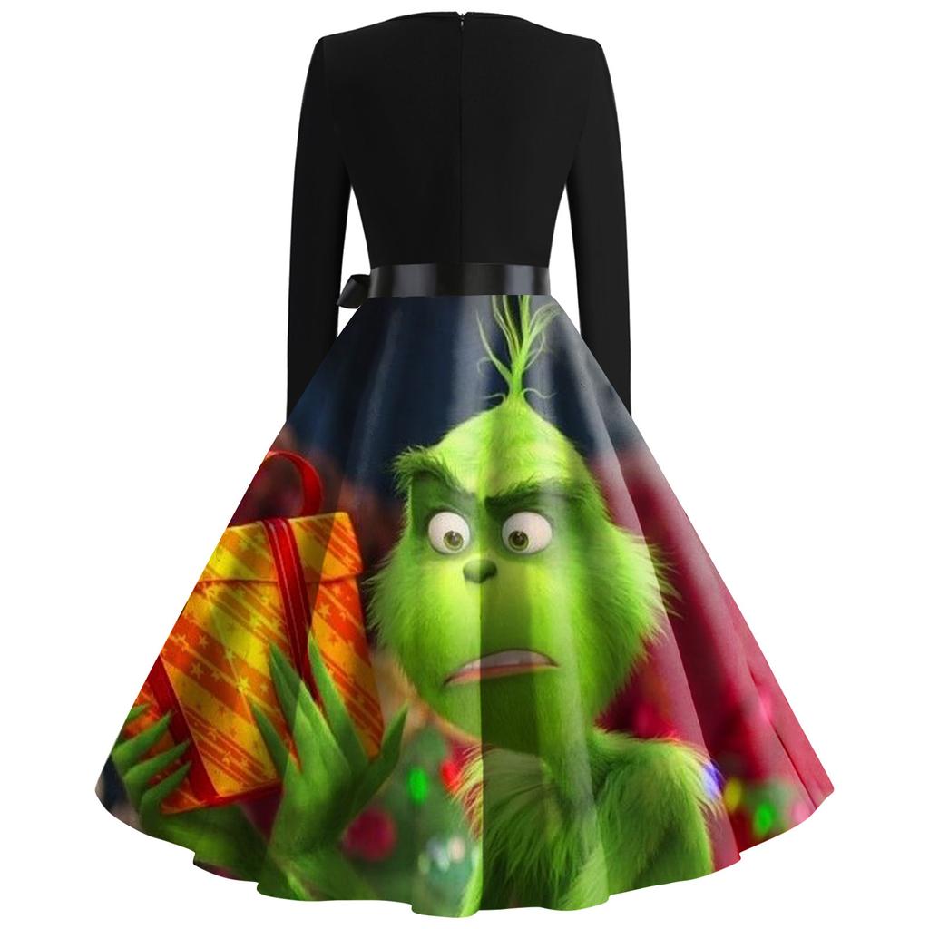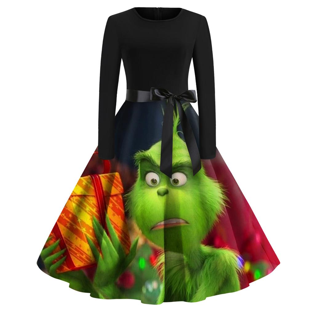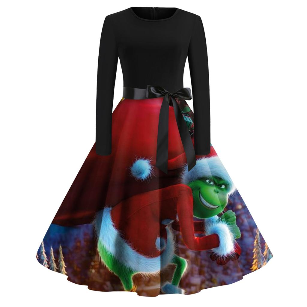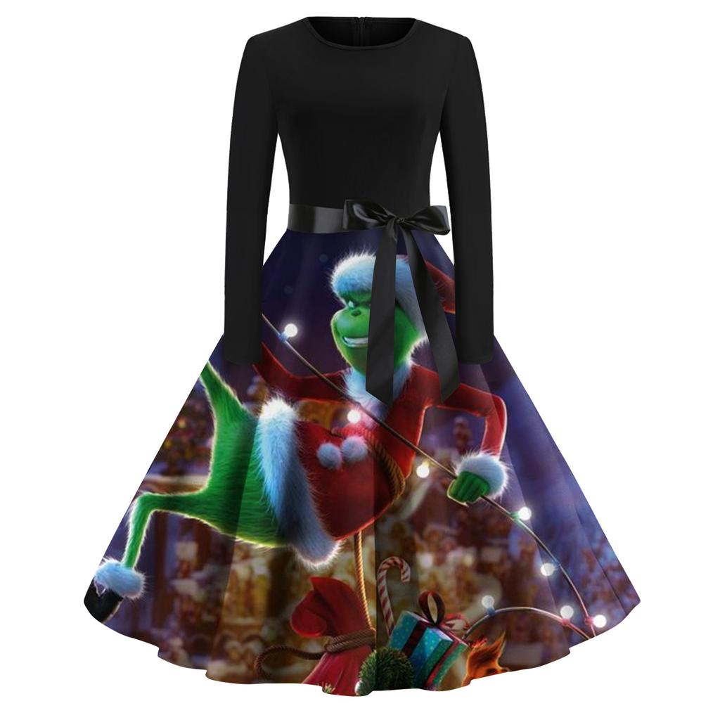 Женское рождественское расклешенное платье с принтом для женщин, платье с длинным рукавом, вечерние повседневные платья