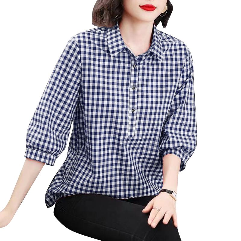 ZANZEA Женская повседневная блузка с отложным воротником и принтом в сетку, с рукавами 3/4 — купить товар онлайн с бесплатной доставкой по всему миру!