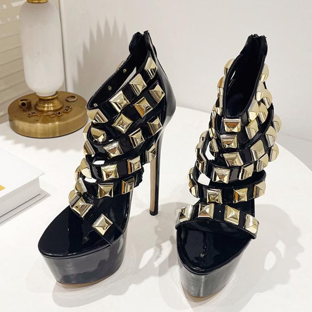 Liyke Летние туфли с открытым носком на очень тонком высоком каблуке, женские сексуальные босоножки на молнии, модные женские туфли-лодочки на платформе с металлическими заклепками, черные