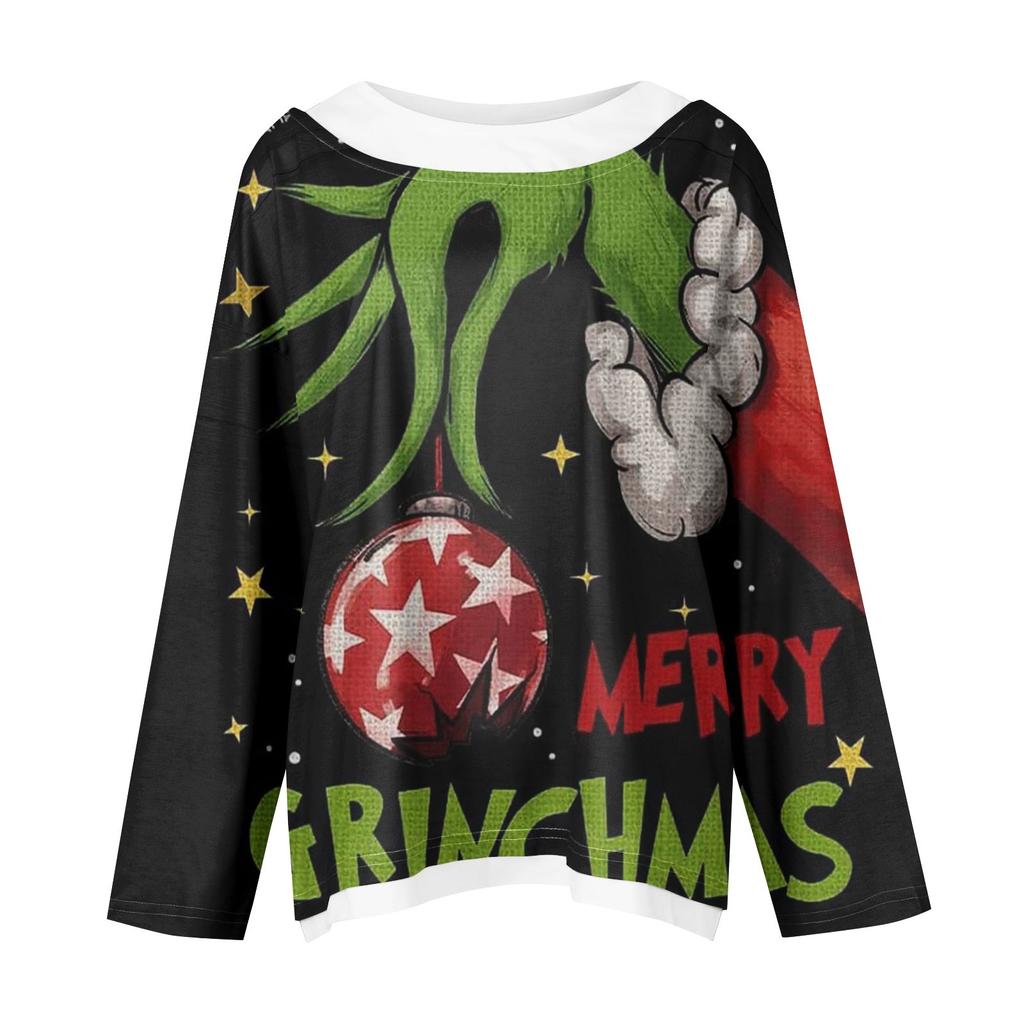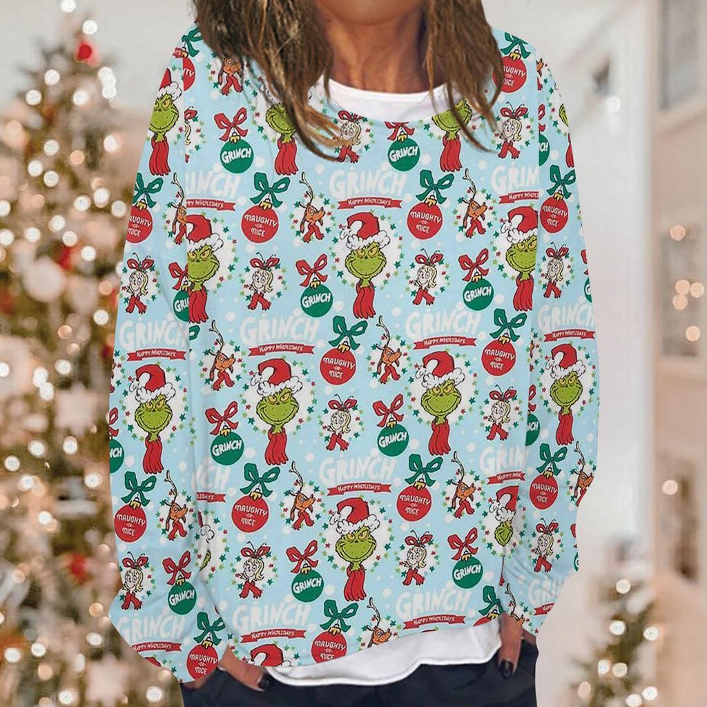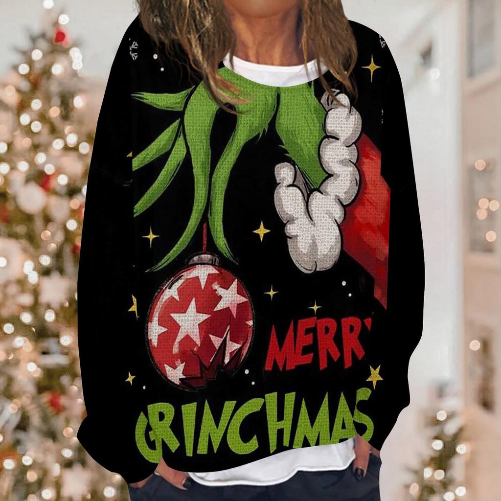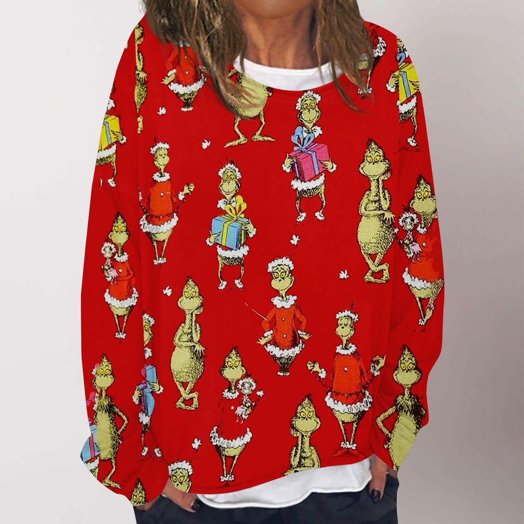 Женская повседневная модная толстовка с длинным рукавом и круглым вырезом с рождественским принтом, многослойный пуловер, топ