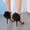 Женские туфли с цветочным узором, сандалии с большим цветком в европейском и американском стиле, вечерняя обувь для ночного клуба, черные сандалии на высоком каблуке