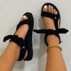 Новые женские сандалии, цветные повседневные туфли на плоской подошве со шнуровкой и бантом для дам, летняя модная уличная пляжная обувь с леопардовым принтом, большие размеры 43