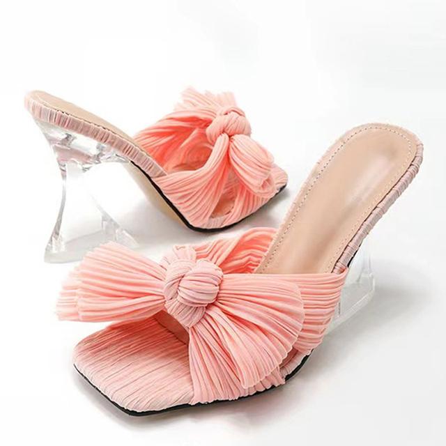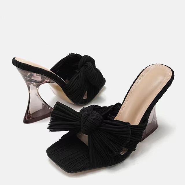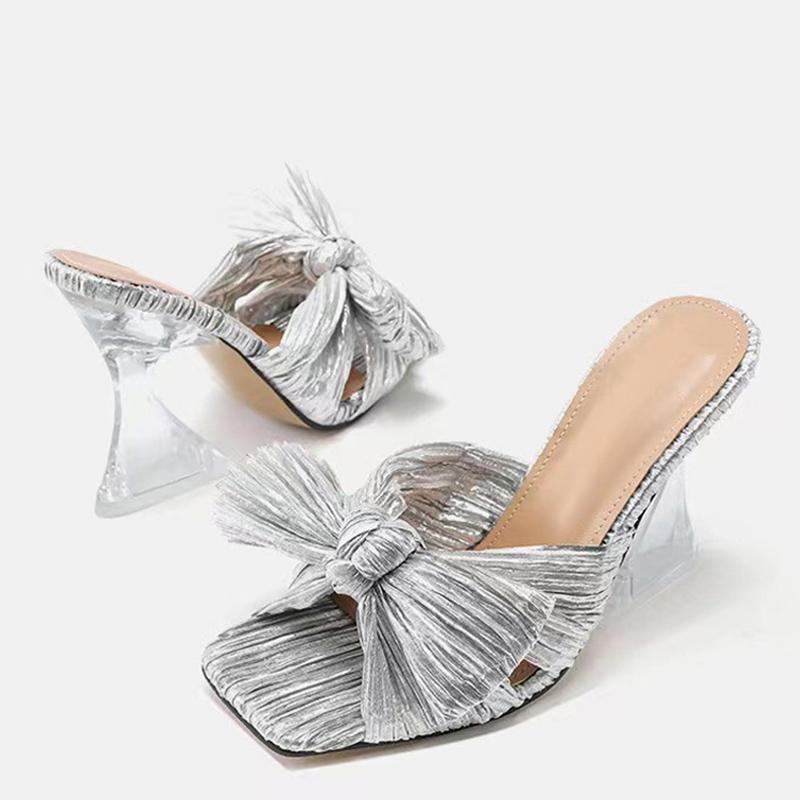 Liyke бабочка-узел синие женские странные стильные прозрачные тапочки на высоком каблуке сандалии-гладиаторы женская обувь с квадратным носком