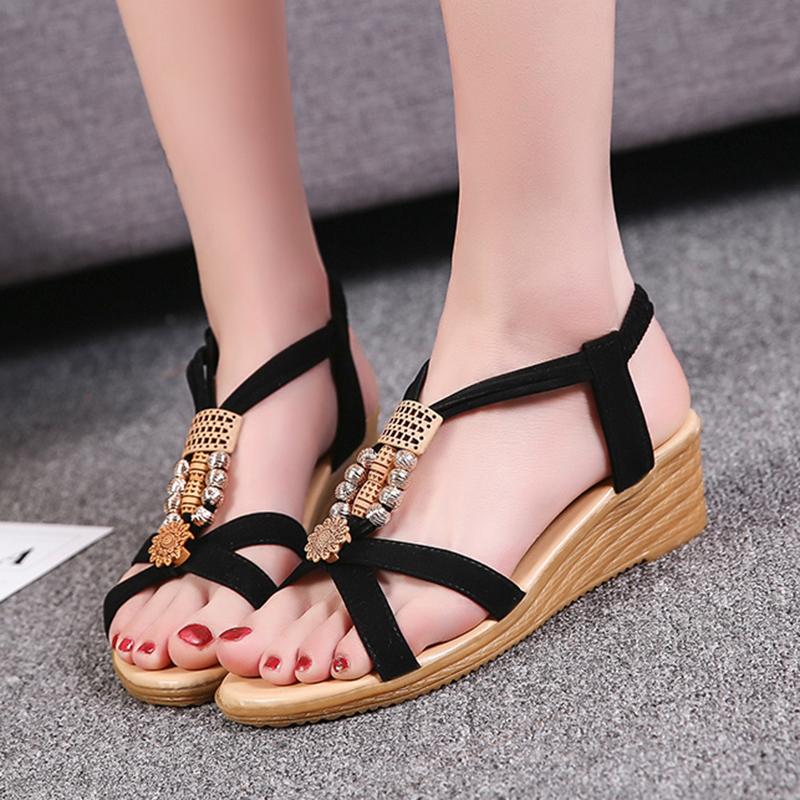 Богемные сандалии Rimocy на танкетке, женские летние римские туфли с ремешком на щиколотке и бусинами, женская повседневная пляжная обувь на среднем каблуке, пляжные сандалии Mujer