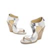 Новые летние серебряные тапочки на высоком каблуке, разноцветные туфли на танкетке для девочек, женские сандалии, летние женские