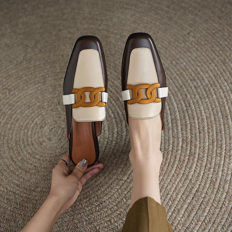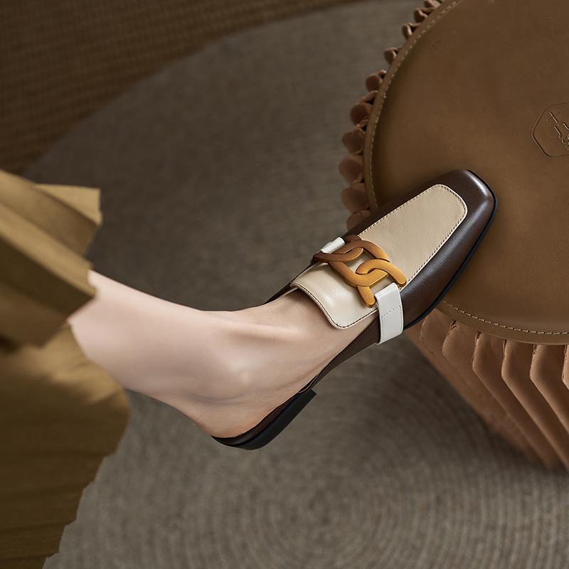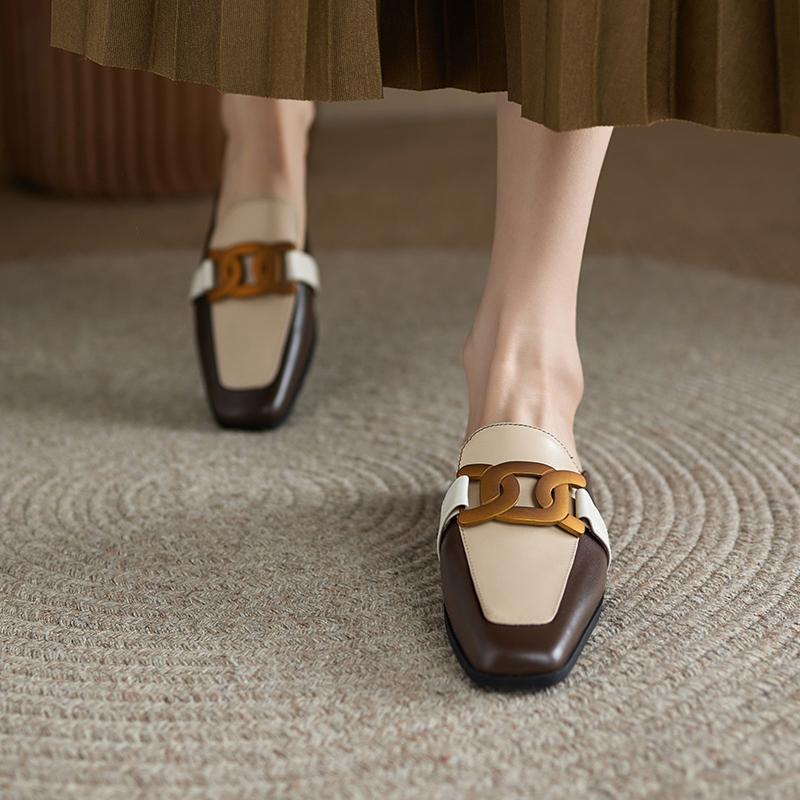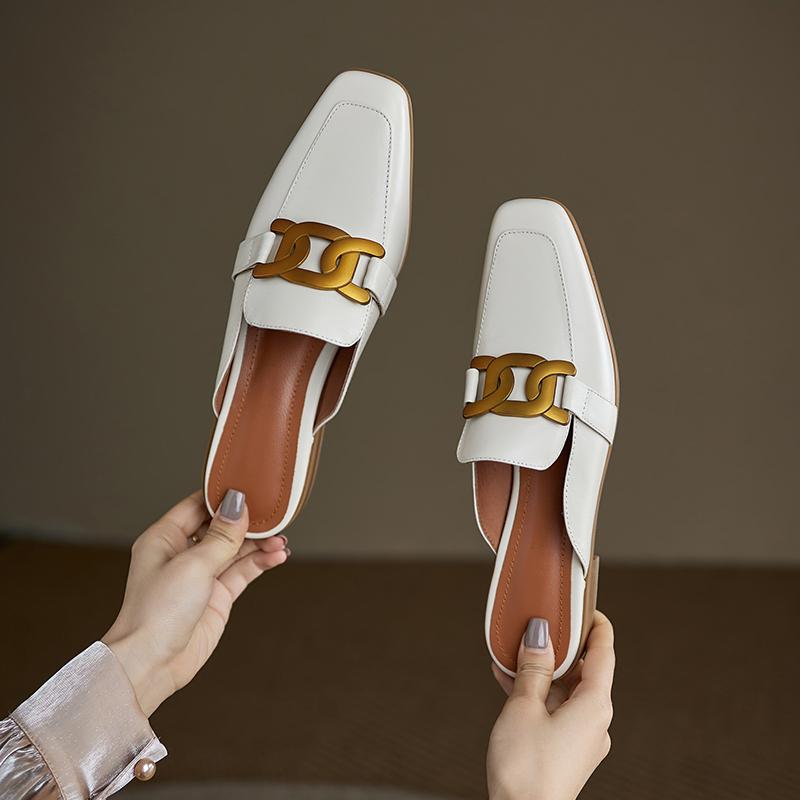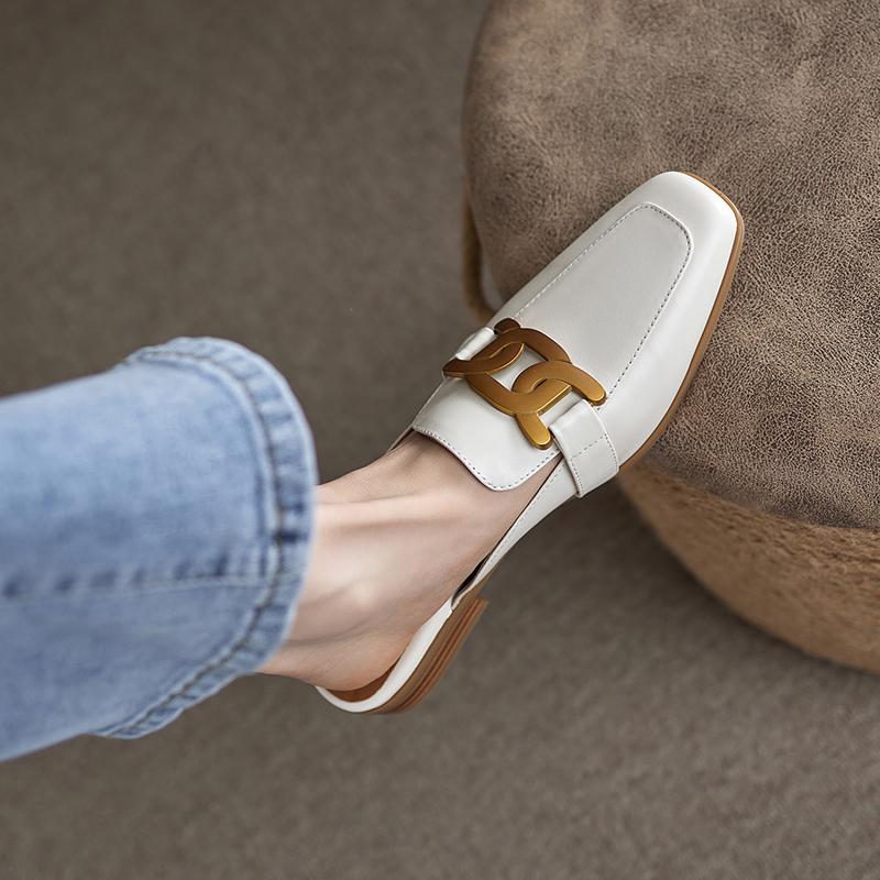 Новая весенне-летняя женская обувь, туфли-лодочки с квадратным носком, женские однотонные туфли-лодочки из коровьей кожи на низком каблуке, женские шлепанцы на металлических пуговицах
