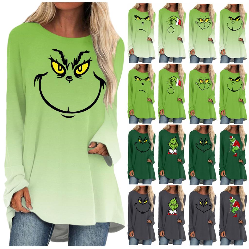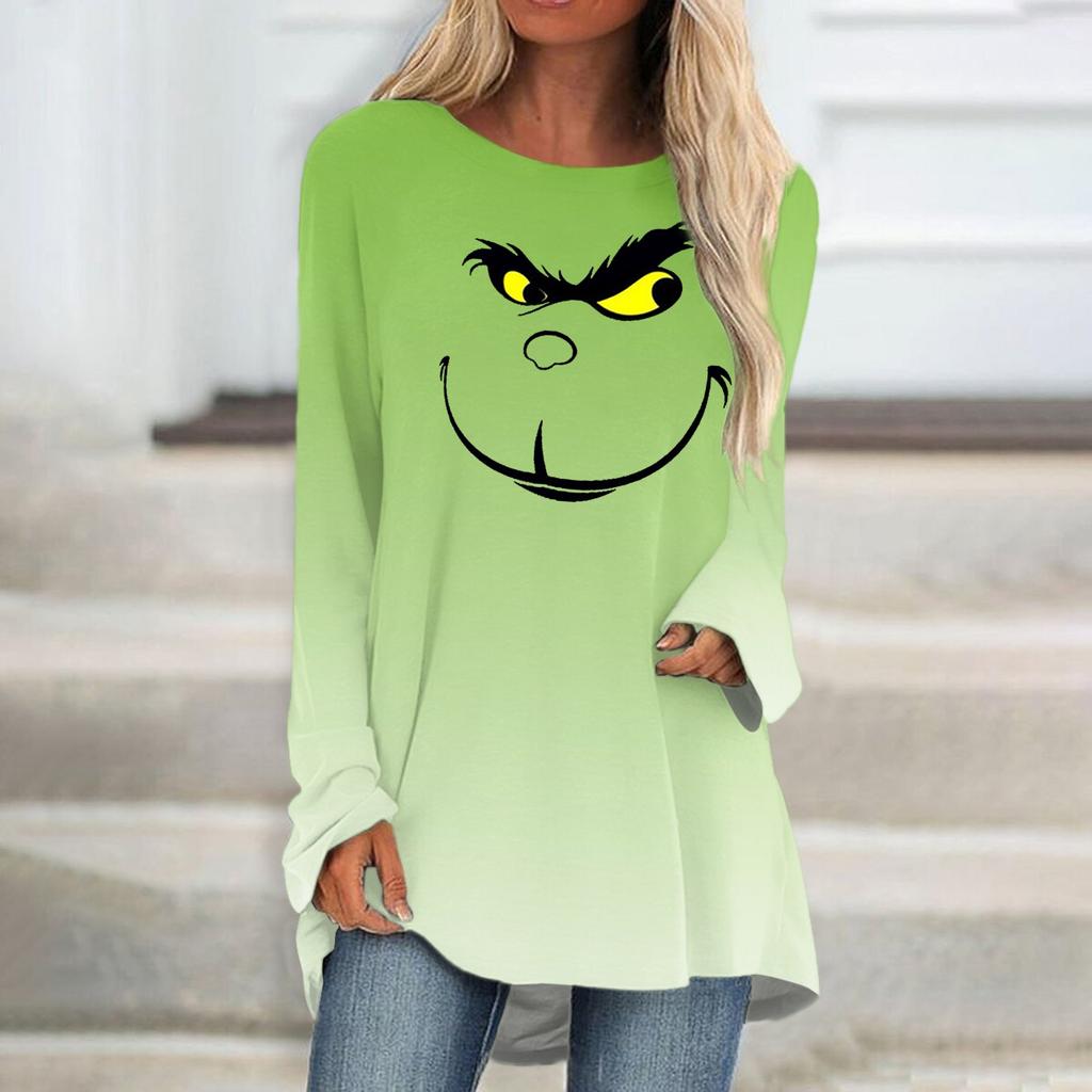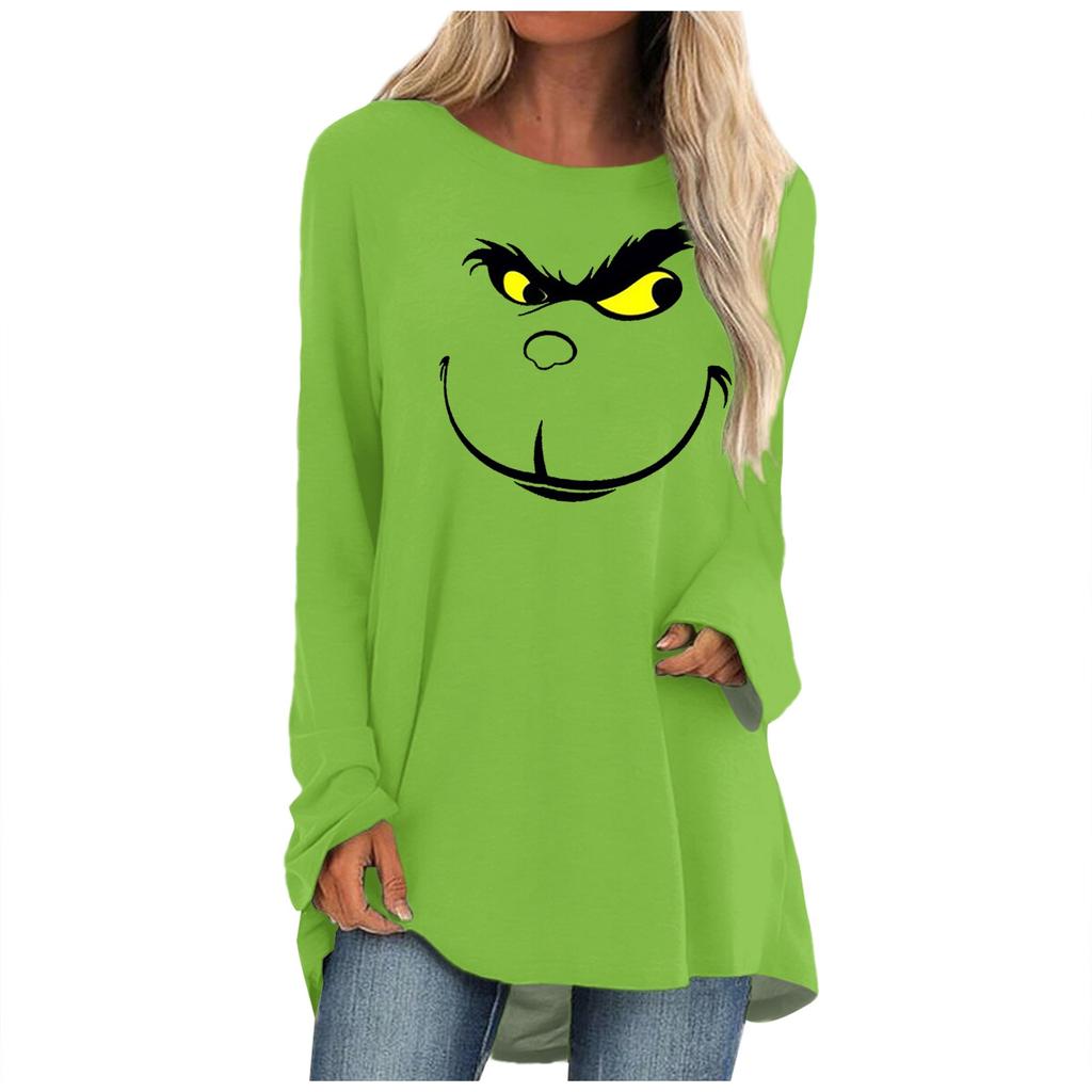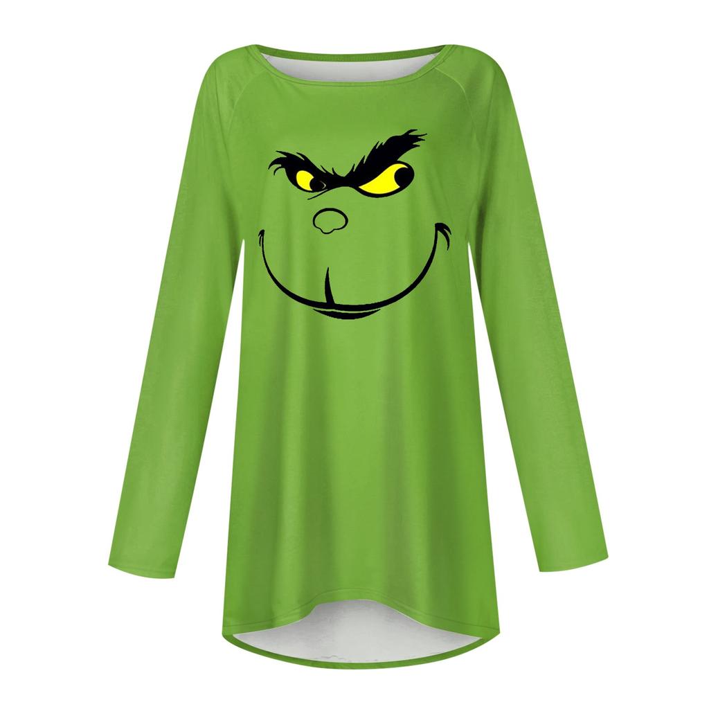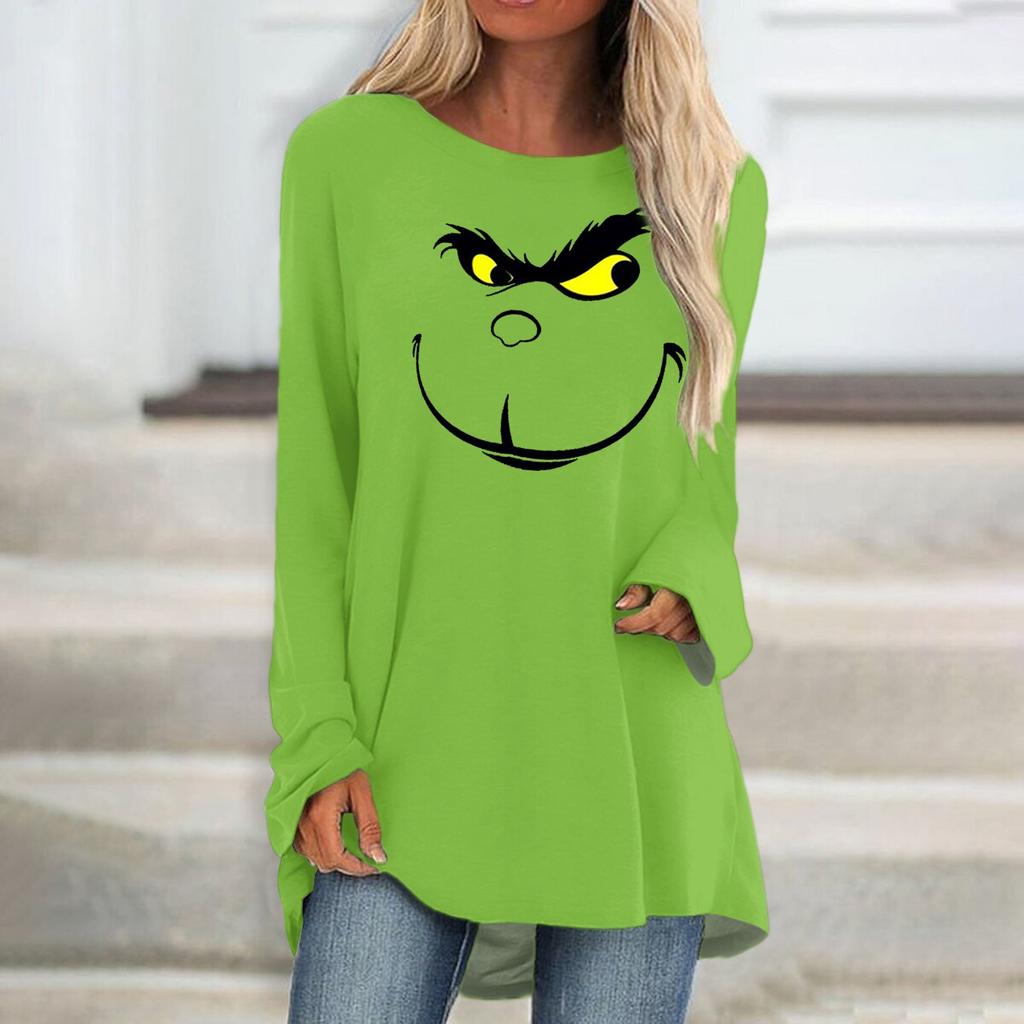 Модная женская повседневная футболка больших размеров с длинными рукавами и круглым вырезом с принтом