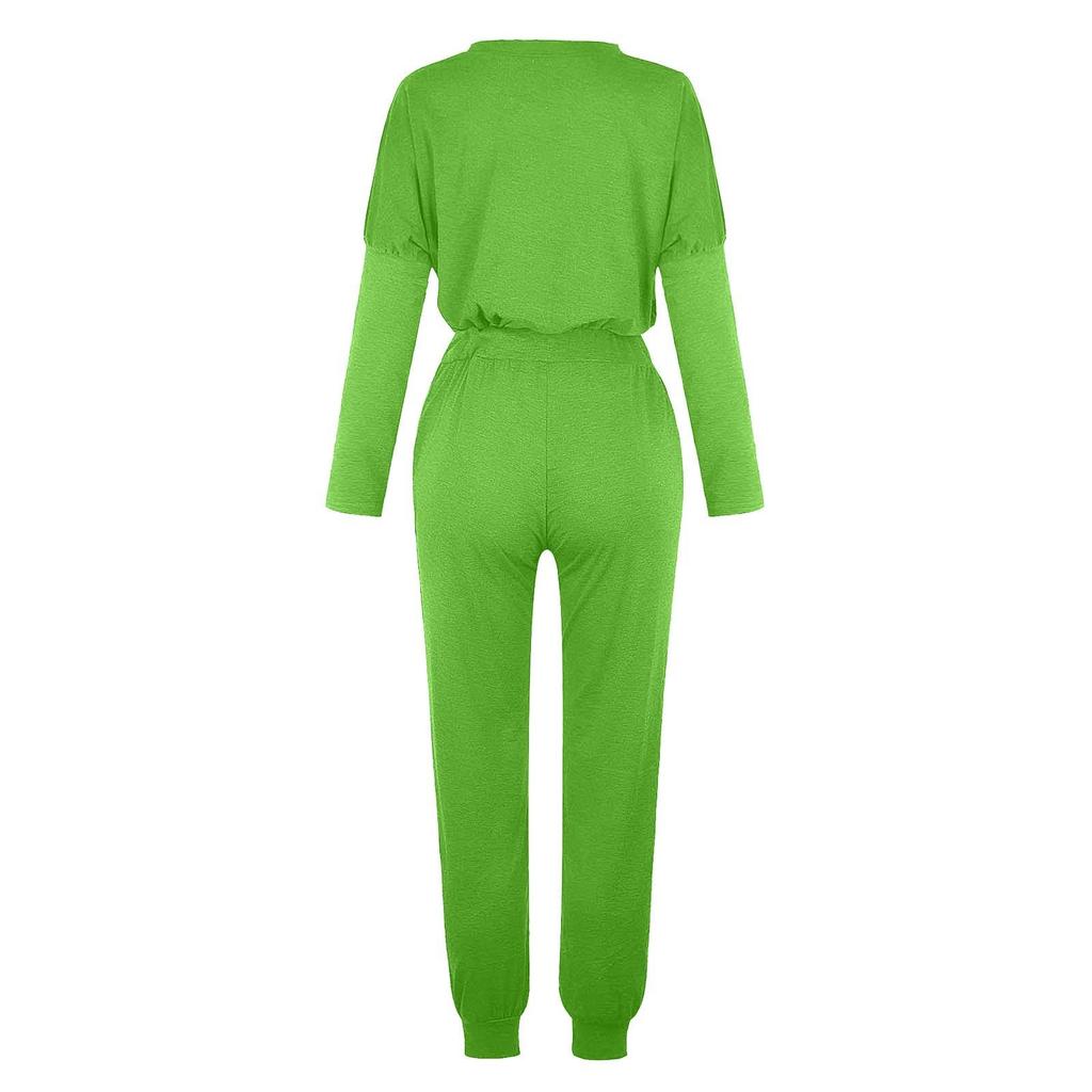 Наборы для женщин, комплекты из 2 предметов, рубашки с длинными рукавами и круглым вырезом, спортивные штаны на шнурке, карманные комплекты