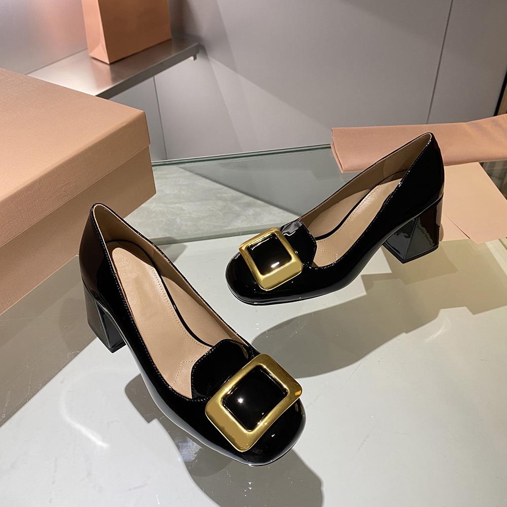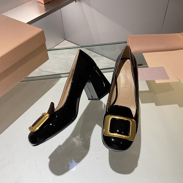 Туфли Мэри Джейн на толстом каблуке с квадратной пряжкой, винтажные туфли Lefu из лаковой кожи на высоком каблуке с квадратной головкой и неглубоким горлышком