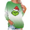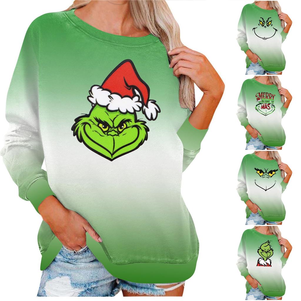 Женская рубашка, повседневная футболка с длинными рукавами и рождественским принтом, круглый вырез и нашивка, топ