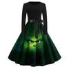 Женское рождественское расклешенное платье с принтом для женщин, платье с длинным рукавом, вечерние повседневные платья