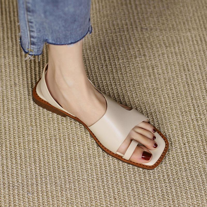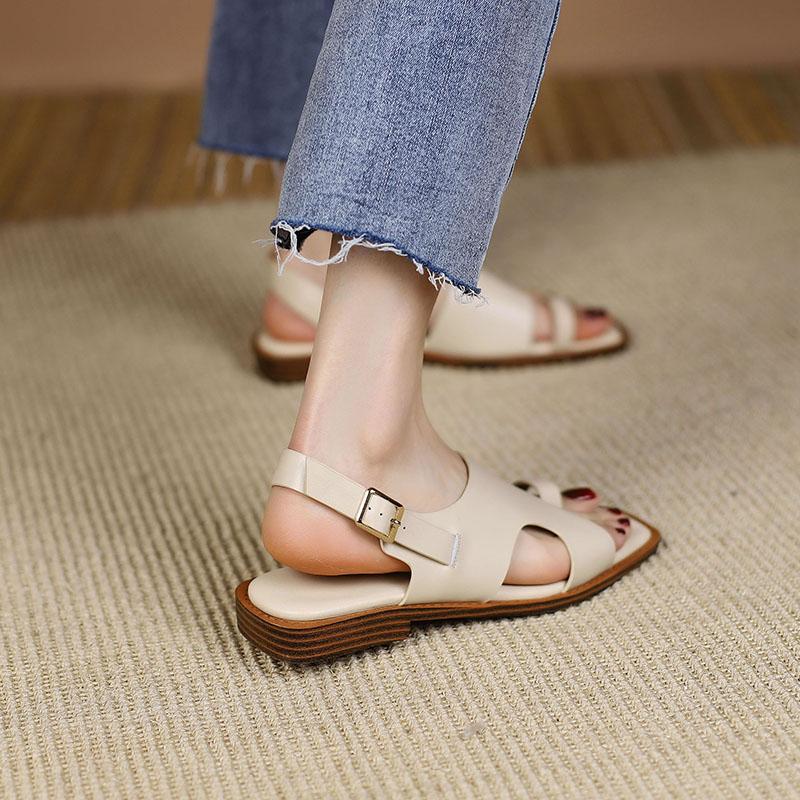 Летние сандалии, женская обувь на плоской подошве, женские сандалии, обувь из натуральной кожи, лаконичная обувь для женщин