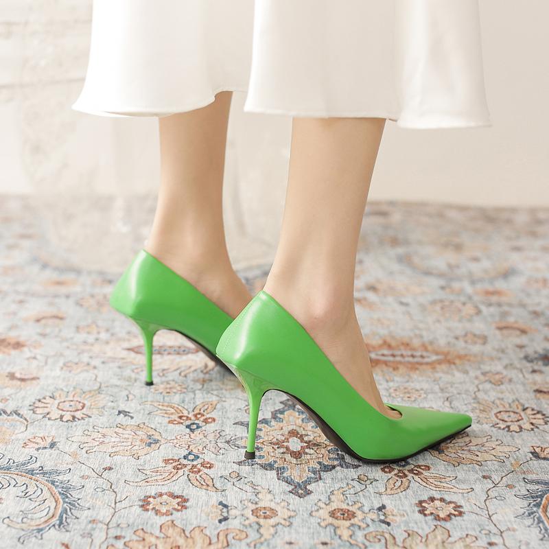 Женские туфли на высоком каблуке, роскошные женские офисные туфли-лодочки с острым носком, женские модельные туфли для вечеринок, дизайнерские туфли зеленого и черного цвета, модные новые большие размеры