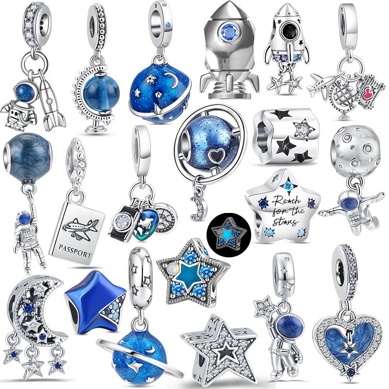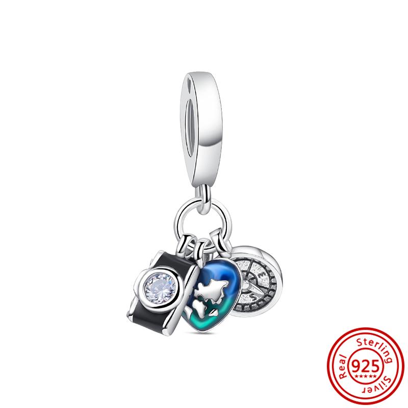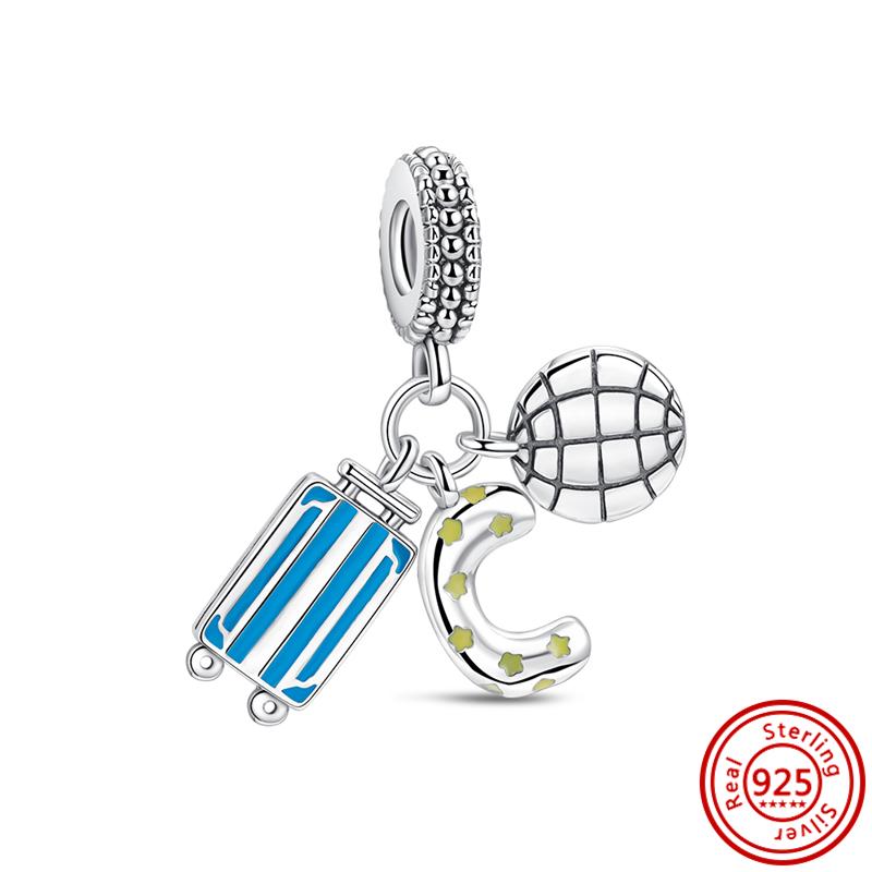 Оригинальные подвески в форме самолета, глобус, чемодан, висячие бусины, звезда, луна, женские стерлингового серебра S925, браслет, ювелирные изделия своими руками