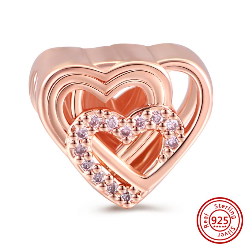 S925 серебро цветок перо блеск звезда кошка любовь сердце полые бусины из розового золота подходят оригинальные подвески браслет ювелирные изделия