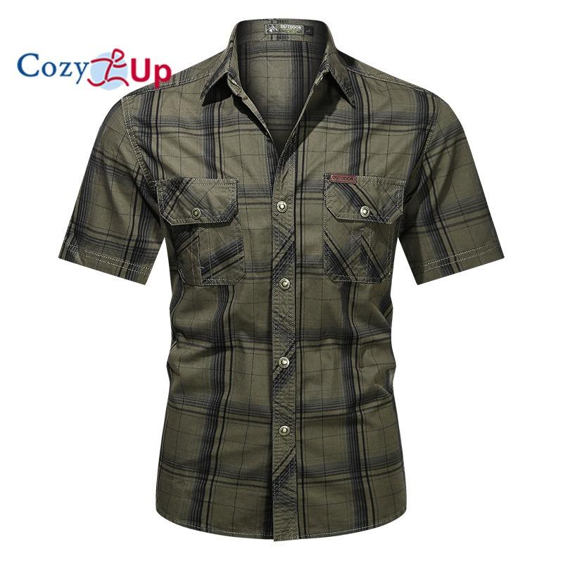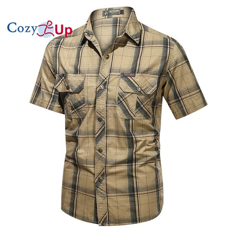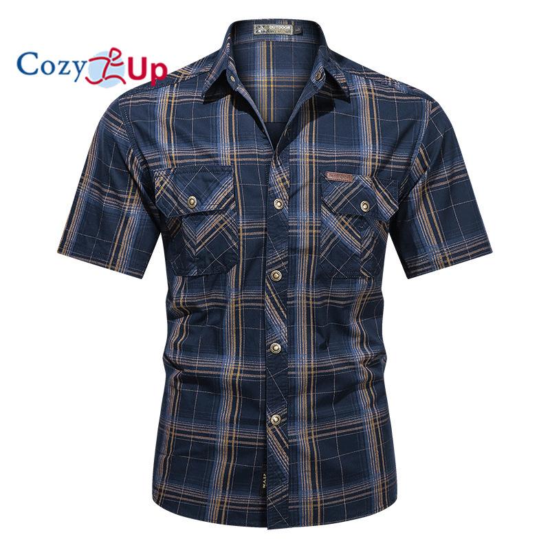 Мужская клетчатая рубашка с короткими рукавами Cozy Up, рабочая одежда из чистого хлопка, повседневный тонкий свободный топ с короткими рукавами