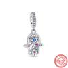 Подлинный кулон из стерлингового серебра S925 с синими глазами демона в виде ладони, круглые бусины, подходит для оригинального браслета с подвесками, женские ювелирные изделия