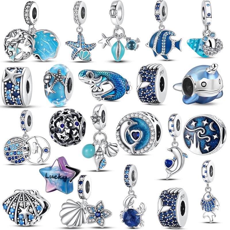 Новинка S925, серебристо-синяя подвеска, висячие морские животные, морская звезда, русалка, рыбья ракушка, подходит для оригинального браслета, бусины, подарок, ювелирные изделия своими руками — купить товар онлайн с бесплатной доставкой до всему миру!