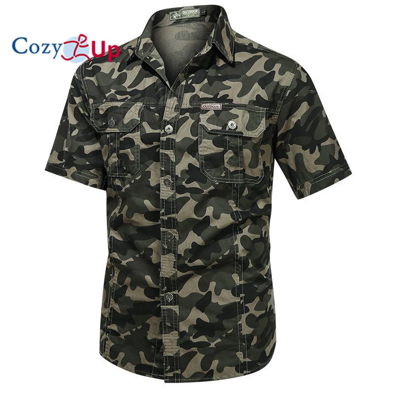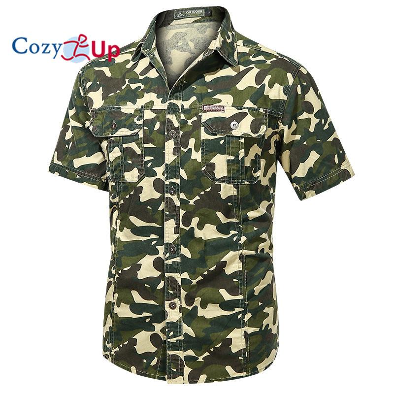 Мужская повседневная рубашка Cosy Up с короткими рукавами из чистого хлопка, свободная камуфляжная рубашка большого размера с половиной рукавов