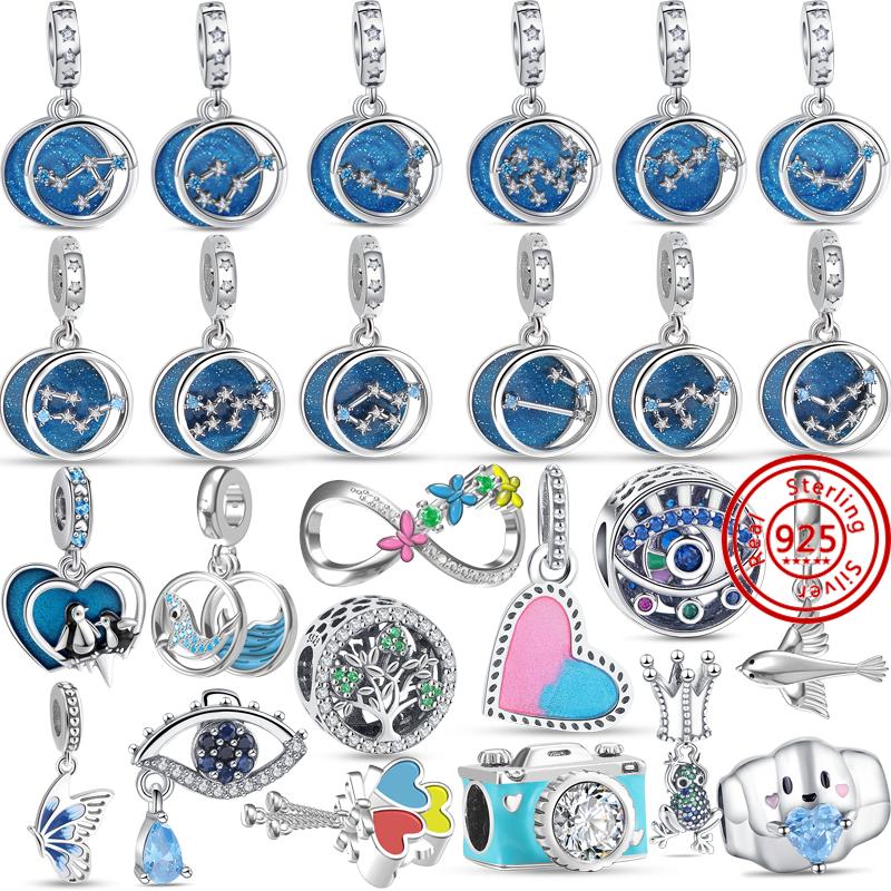 925 Серебро Голубые Глаза Бабочка Пингвин Кит Облако 12 Бусины Созвездия подходят Оригинальные Подвески Браслет DIY Женские Ювелирные Изделия