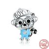 100% стерлингового серебра 925 пробы с принтом лапы, счастливой кошки, собаки, милого щенка, бусины-шармы, подходят для оригинального браслета с подвесками для женщин и девочек, ювелирные изделия