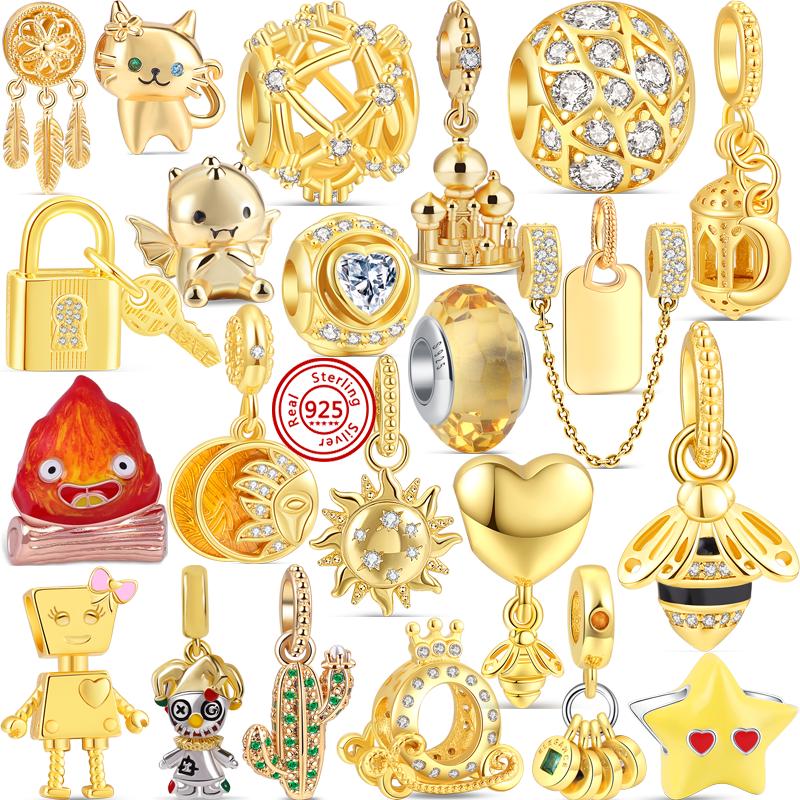 Новый 925 Серебряный Золотой Замок Ключ Пчела Солнечный Замок Красное Пламя Тонкие Бусины Подходит Оригинальный 925 Браслет Подвески DIY Изготовление Ювелирных Изделий