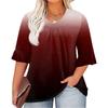 Женская мода, повседневная плиссированная футболка с v-образным вырезом и принтом, семиминутная футболка с рюшами и рукавами, топы больших размеров