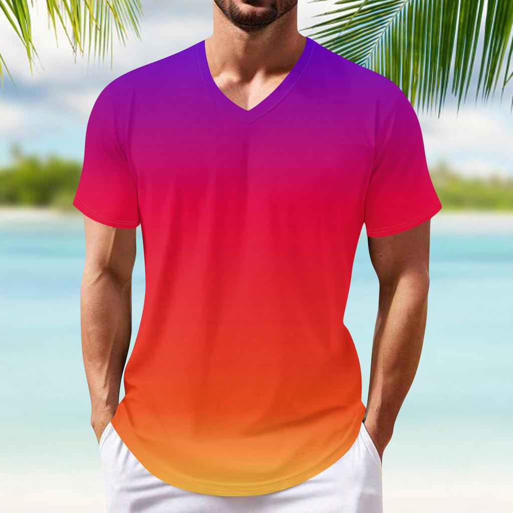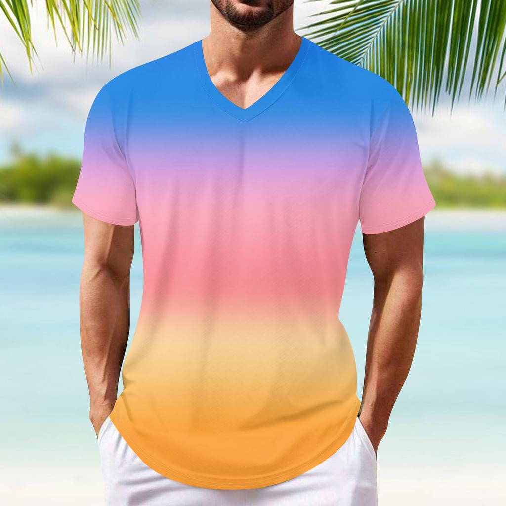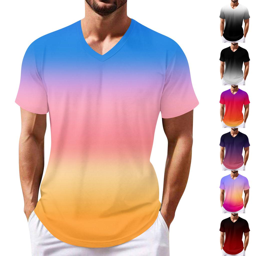 Летняя мужская популярная футболка с v-образным вырезом и короткими рукавами с принтом