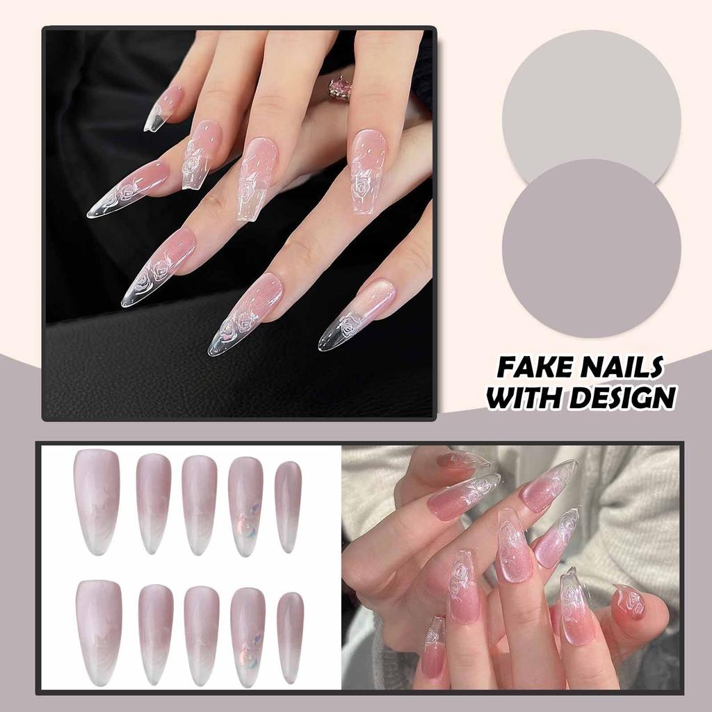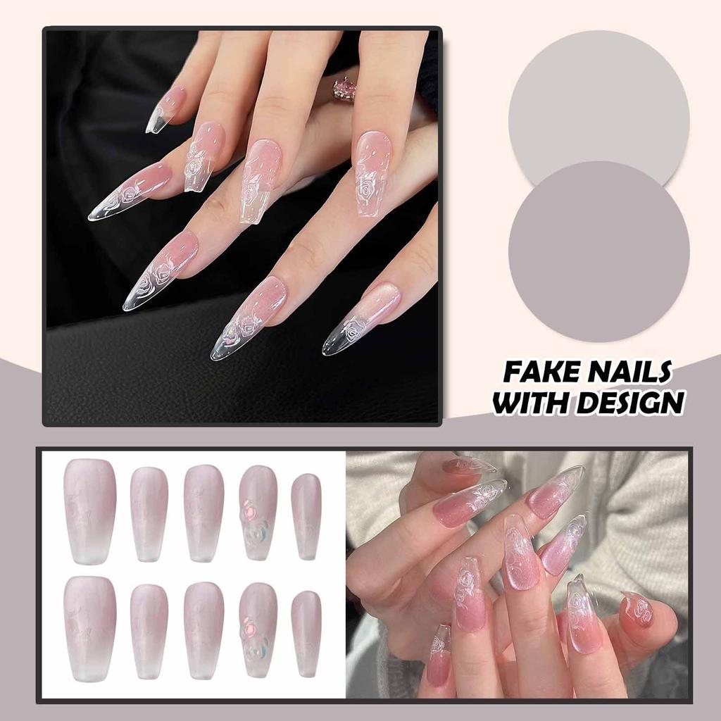 【Посылка содержит】: В коробке 10 накладных ногтей, пилочка для ногтей и клей. Накладные ногти разделены на 4 разных размера, вам удобно выбирать накладные ногти, которые подходят вашему ногтю.. 【Простота в использовании】: надавливание на ногти с помощью клея является идеальной заменой лака для ногтей, не нужно ждать высыхания, достаточно нескольких минут, чтобы получить профессиональные результаты на ногтях.. 【Естественный эффект】: Акриловый пресс на ногтях изготовлен из АБС-материала, износостойкий и эластичный, может быть изменен, чтобы лучше соответствовать форме вашего ногтя, эффект использования удобен и естественен.. 【Легко удалить】:Клей можно быстро удалить и он не повредит ваши натуральные ногти. Осторожное удаление сохранит ногти неповрежденными при повторном использовании.. 【Сценарии использования】:Накладные ногти изысканны по стилю и имеют различные стили, подходят для праздничных встреч и вечеринок по случаю дня рождения, делая ваш стиль более красивым.. Пакет включает:10 накладных ногтей + набор клеящих материалов