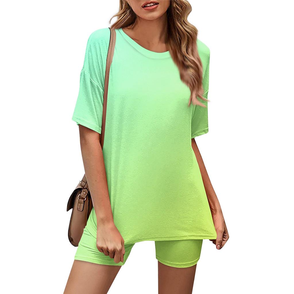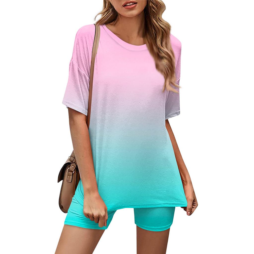 Женский повседневный спортивный комплект из двух предметов, свободный и модный топ с принтом, комплект шорт с короткими рукавами