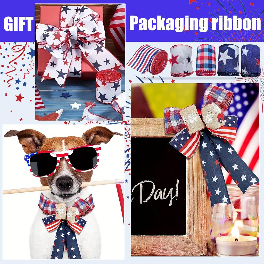 Декоративная лента ко Дню независимости, лента с бантом и звездами, лента для упаковки подарков