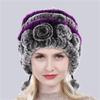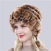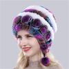 Лидер продаж, зимние женские цветочные полосатые шапки из натурального меха кролика рекс, женские теплые вязаные шапки из натурального меха