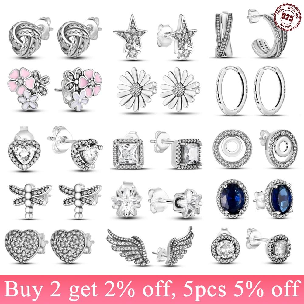 Женские серьги-гвоздики из стерлингового серебра S925 с цветком ромашки, 23 стиля, оригинальные серьги, женские свадебные украшения, подарки — купить товар онлайн с бесплатной доставкой по всему миру!