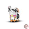 S925 стерлингового серебра милые фиолетовые подвески кошка собака бабочка цветок цепочка безопасности подвески подходят оригинальный браслет своими руками