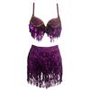 Женский костюм для танца живота с блестками и кисточками на Хэллоуин, костюм для джазового танца на пилоне, верх и низ