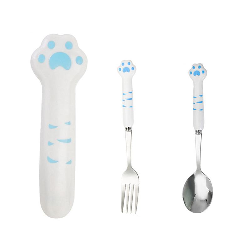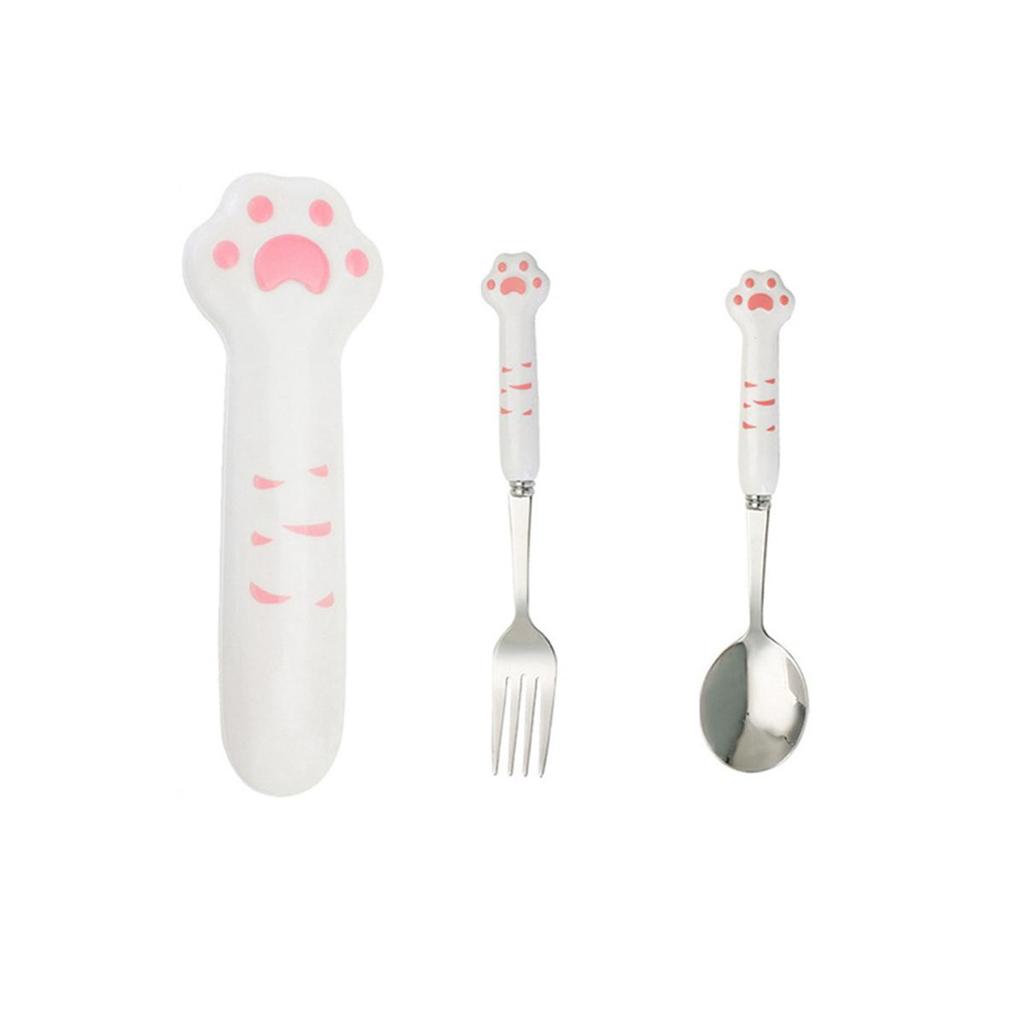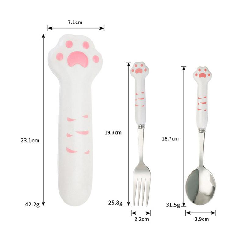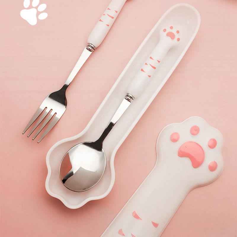 Набор столовых приборов с мультяшной кошачьей лапой, ложка, вилка, портативная посуда для обеда из нержавеющей стали, дорожная посуда, кухонная посуда, аксессуары