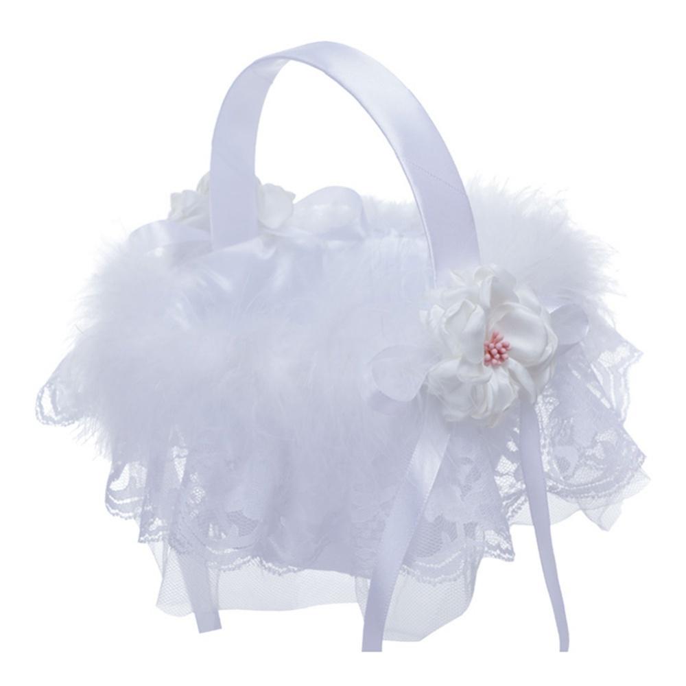 Свадебные корзины Белая корзина для девочек-цветочниц с бантом Сказочное кружево с декором из страз Белая свадебная корзина для девочек-цветочниц