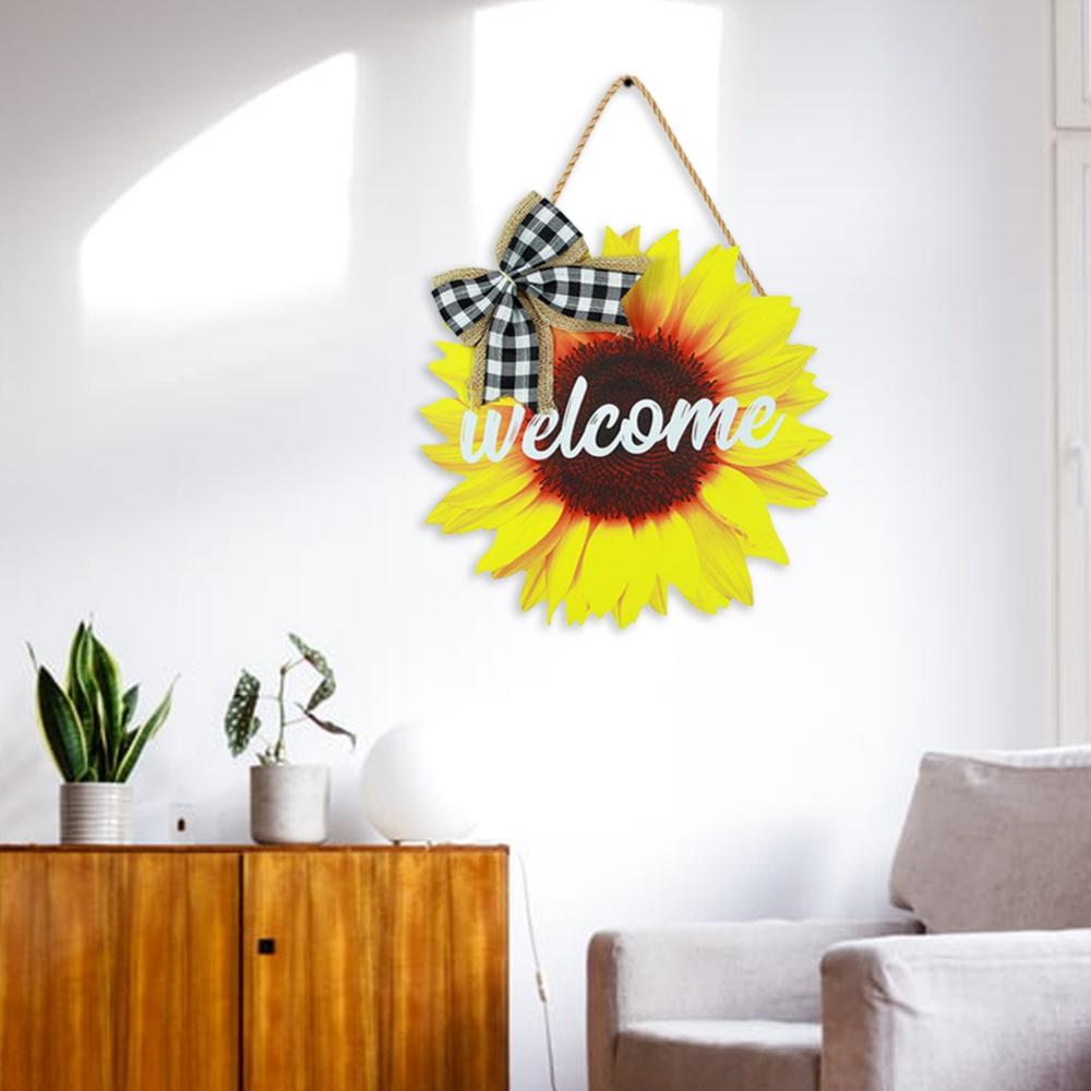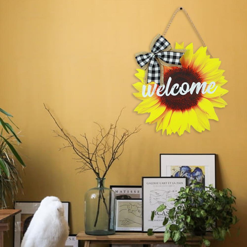 Летняя дверная вешалка с подсолнухом, вывеска спереди для украшения двери, деревянные венки, подвесная дверь, аксессуары для крыльца фермерского дома
