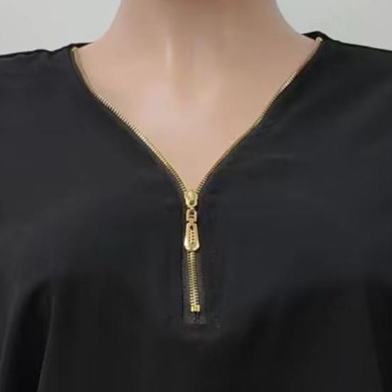 Модное сочетание: Застежка-молния до половины спереди придает этой классической блузке современный и сексуальный вид. Она идеально подходит для придания уверенности в себе и излучает юношеский шарм, куда бы вы ни пошли.