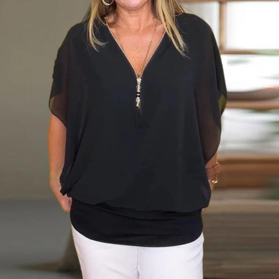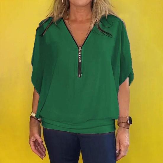 Универсальный стиль: Эта свободная шифоновая рубашка-пуловер с застежкой-молнией спереди наполовину позволяет легко сочетать ее с брюками любого стиля, создавая повседневный, но модный образ, подчеркивающий вашу фигуру.