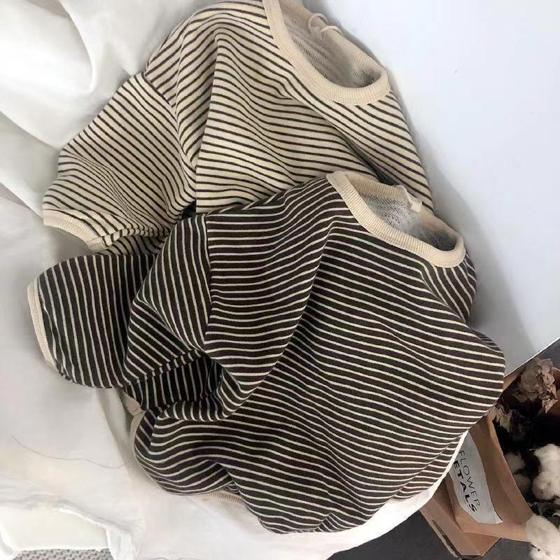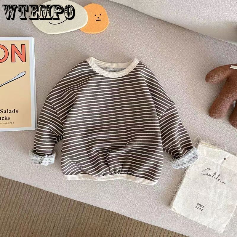 Осенний костюм, полосатая футболка с длинными рукавами для мальчиков и девочек, детская хлопковая нижняя рубашка, повседневные детские топы, свободные футболки для малышей